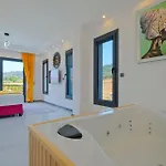 Die Küchenausstattung der Unterkunft umfasst eine Kaffee-/Teemaschine und einen Kühlschrank, die in einem Essbereich und einem Essbereich im Freien zur Verfügung stehen. Ein Whirlpool sorgen für ultimative Entspannung.